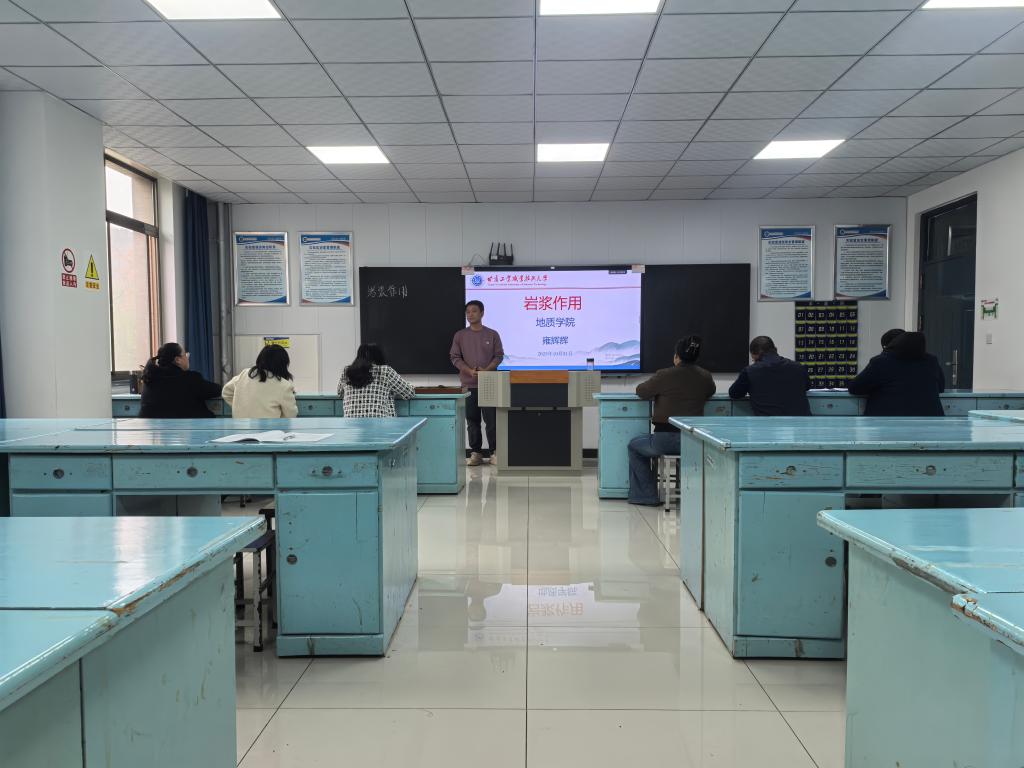 授课内容围绕岩浆及岩浆作用、火山作用、岩浆侵入作用及岩浆活动的研究意义等方面展开。雍老师通过生动的讲解及标本展示,将抽象的地质知识转化为直观的观察体验,展示如何通过岩浆岩及其成因来探索地球的生命脉络。授课结束后各位资深教师对雍老师进行了点评建议,表扬了其备课扎实、准备充分、态度严谨等优点的同时也对其不足之处提出了建议并进行了指导。