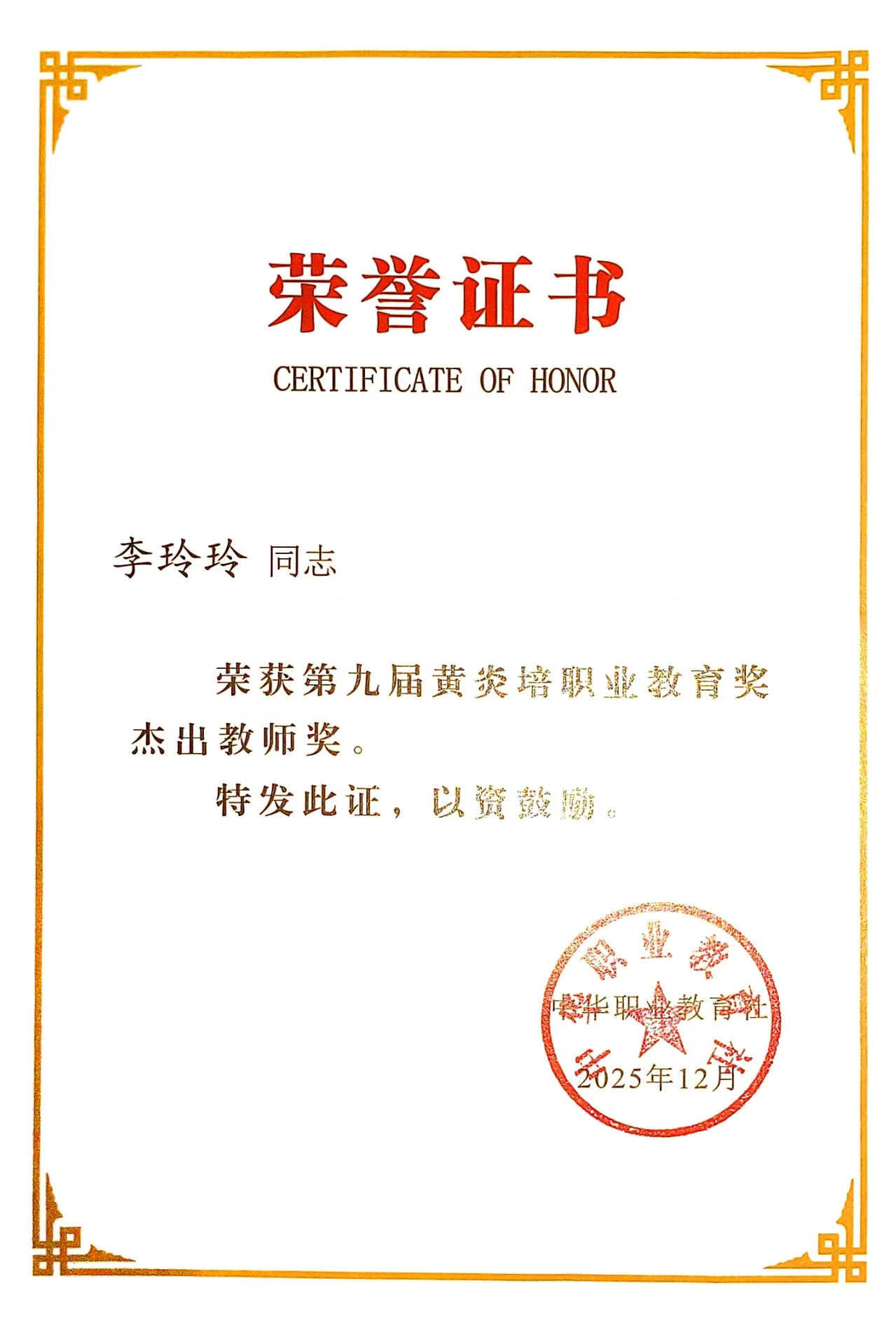 此次获奖既是对李玲玲教授个人职业教育业绩的充分肯定,也是我校长期以来重视师资队伍建设、持续推进教育教学改革的重要体现。学校将以此次获奖为契机,进一步弘扬黄炎培职业教育精神,加强教师队伍建设,引导广大教师潜心教书育人、积极追求卓越,不断深化内涵建设,提升人才培养质量,为服务国家战略与区域发展培养更多高水平技术技能人才。