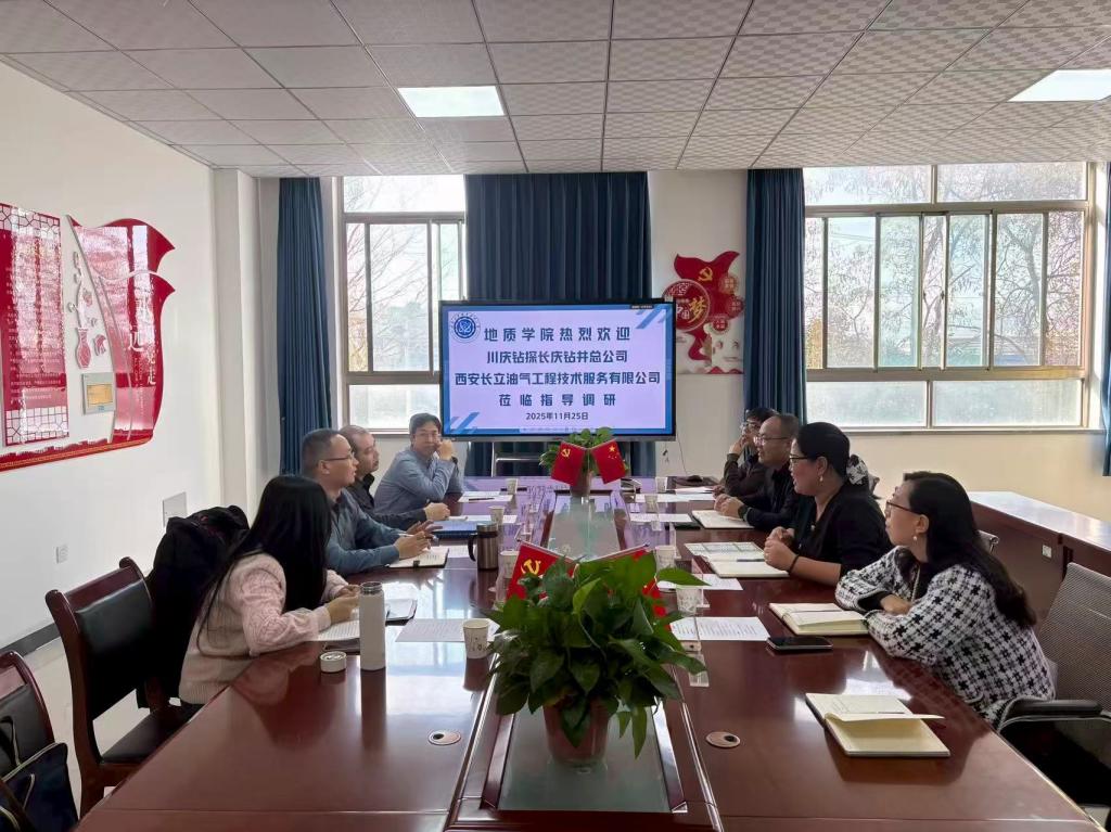 2025年11月25日,川庆钻探工程有限公司长庆钻井总公司人力资源部主管闫领群和西安长立油气工程技术服务有限公司人事部经理王燕一行到sunbet进行交流座谈。学院领导班子热情接待,双方围绕实习基地共建、“订单班”人才培养等议题展开深入交流。